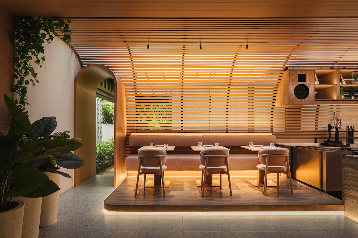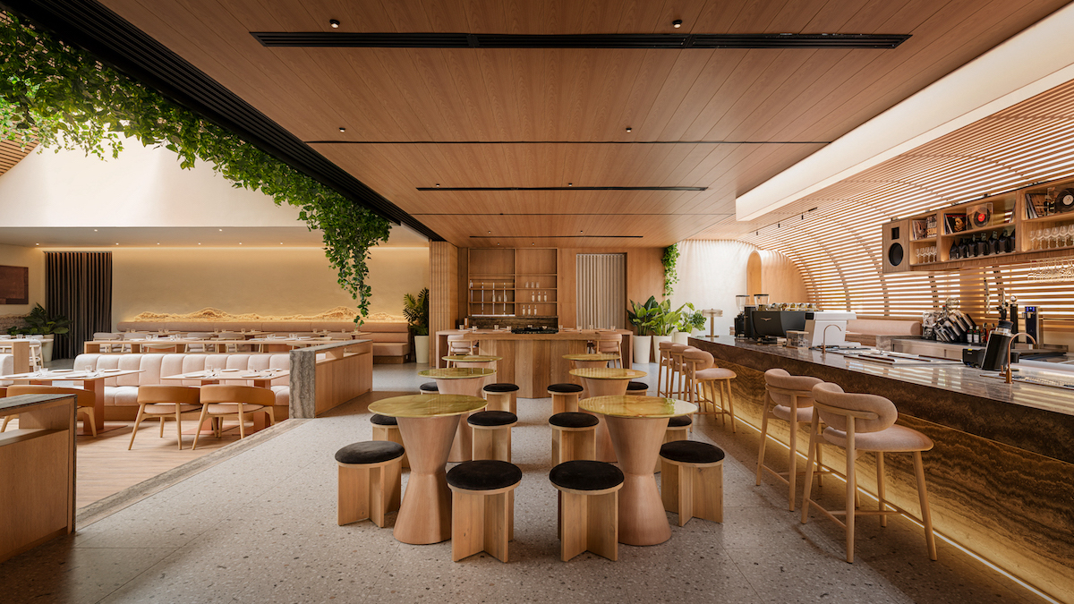 Throughout the day, Sun & Moon presents an airy, light-filled calm defined by natural materials and gentle illumination. After dusk, the character shifts the timber deepens in tone, lighting becomes more dramatic, and the sunken pit evolves into an animated social hub. The space moves effortlessly between serenity and vibrancy, reflecting the full cycle of its namesake: the clarity of the sun and the allure of the moon.