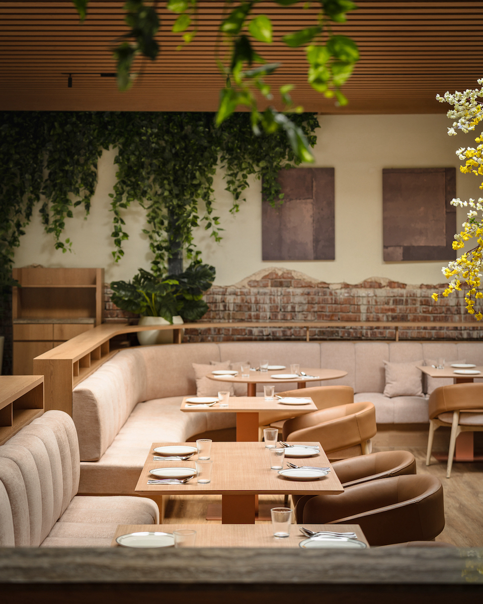 Located in the heart of Kuala Lumpur’s city centre, Sun & Moon transforms an abandoned bungalow into a contemporary dining destination shaped by daylight, texture, and the duality between day and night. Two moods, one space. Conceived as a brunch café that transitions into a lounge with DJ-led ambience after sunset, the design adopts a minimalist palette of light oak, reclaimed timber, grey travertine, and soft-toned fabrics create an atmosphere of calm restraint, while exposed brick walls preserve the building’s original patina, honouring the memory of its former state. Lush greenery drapes across key architectural elements, softening the interior and bringing the outdoors in.